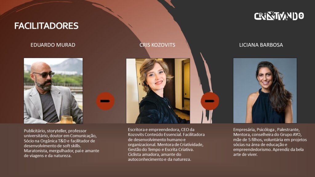 - 03 (três) sessões online de mentoria em Gestão do Tempo com a especialista Cris Kozovits.